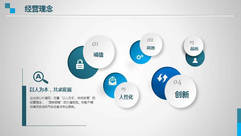 經(jīng)營理念:以持續(xù)創(chuàng)新的技術、穩(wěn)定節(jié)能的產(chǎn)品、高效優(yōu)質(zhì)的服務贏取用戶,成為氣體工程一站式解決方案服務商。