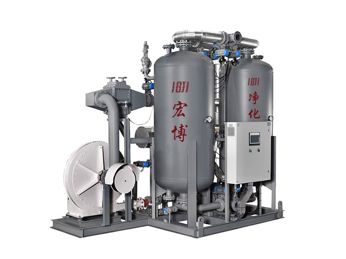 鼓風(fēng)零氣耗吸附式干燥機是采用鼓風(fēng)機抽取環(huán)境空氣,經(jīng)過加熱器加熱后去再生吸附劑,冷吹時利用鼓風(fēng)機抽取環(huán)境空氣并經(jīng)過冷卻器進行內(nèi)部循環(huán)冷卻,再生過程沒有壓縮空氣損耗